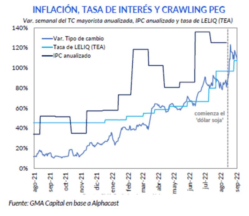 "En los últimos días el banco central disminuyó el ritmo de devaluación a 5,8% mensual, bastante por debajo del comienzo de mes (6,7% mensual). Esto puede responder a estrategias para mejorar el resultado de las posiciones en el mercado de futuros a medida que se acerca el fin de mes. Sin embargo, este ritmo vuelve a ubicarse por debajo de la inflación esperada para septiembre, en torno al 7% mensual", advirtieron.