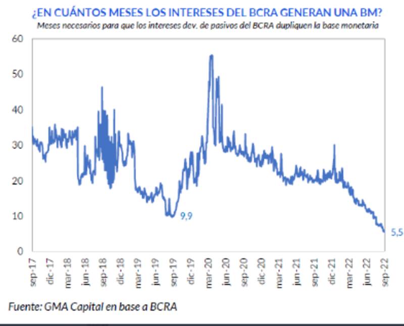 Así, la base monetaria se expandió 28% en menos de 30 días y, mirando hacia adelante, por los intereses de las Leliqs, dentro de los próximos 5,5 meses tendremos una nueva base monetaria.