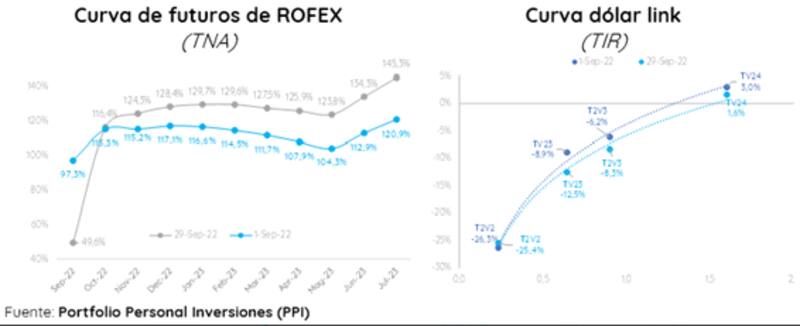 "El apetito por cobertura cambiaria se recrudeció, evidenciando que los inversores consideran que la chance de una devaluación está más latente que nunca. Tanto en ROFEX como en la curva dólar linked, se cuentan la misma historia. En el cortísimo plazo cedieron levemente las expectativas devaluatorias, pero el mercado pricea que antes de las elecciones presidenciales de 2023 podría haber un salto discreto del dólar oficial", comentaron.