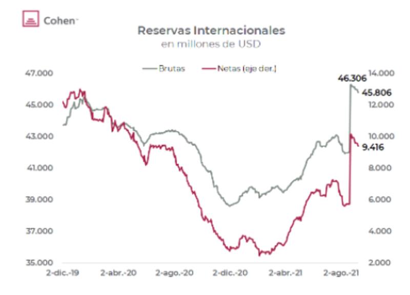 Según cálculos de Cohen, descontando los encajes en moneda extranjera, swap con China y otros pasivos del BCRA, las reservas netas suman u$s 9100 millones.