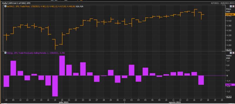 En el día de hoy, la debilidad se mantiene, con los inversores atentos a la publicación de las minutas de la reunión de política de la Reserva Federal en julio.