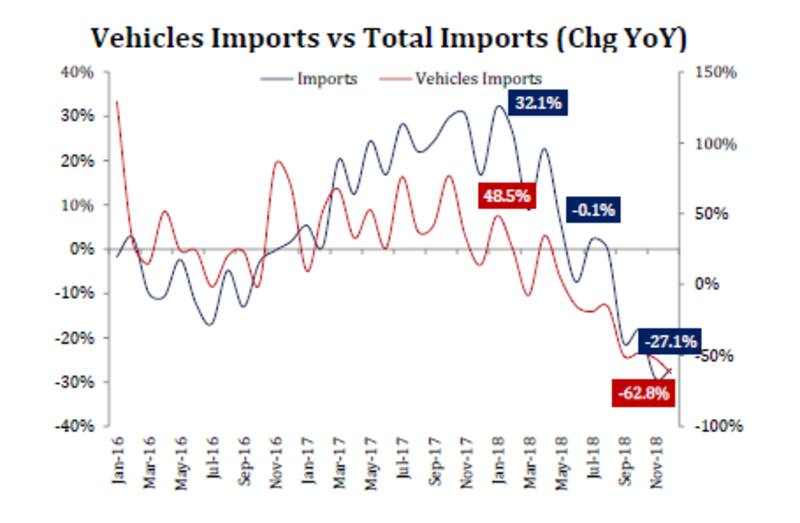 Por último, otro de los factores que generaba inestabilidades en el tipo de cambio era el déficit en la balanza comercial de vehículos, la cual se vio corregida en los últimos meses gracias a que las importaciones cayeron en picada.