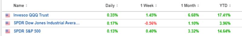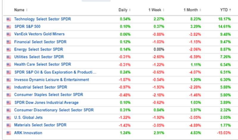 Solamente el índice de tecnología a largo plazo (ARKK) opera en rojo, con una merma de 15% en el año.