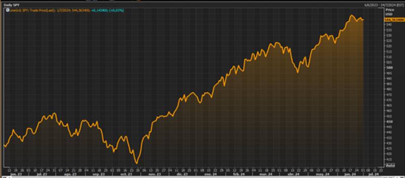 Por su parte, el Nasdaq avanza 17,4%, mientras que el S&P500 registra un avance de 14,5% en 2024.