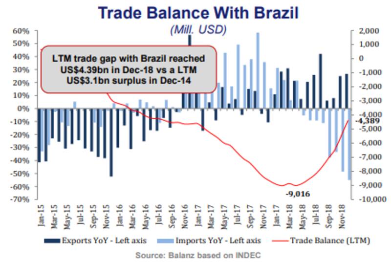 “El balance comercial con Brasil subió un 50% en 2018 comparado con 2017. Por su parte, en diciembre, las exportaciones de Argentina a Brasil aumentaron un 29.3% interanual, mientras que las importaciones cayeron 55.2% , indicaron.