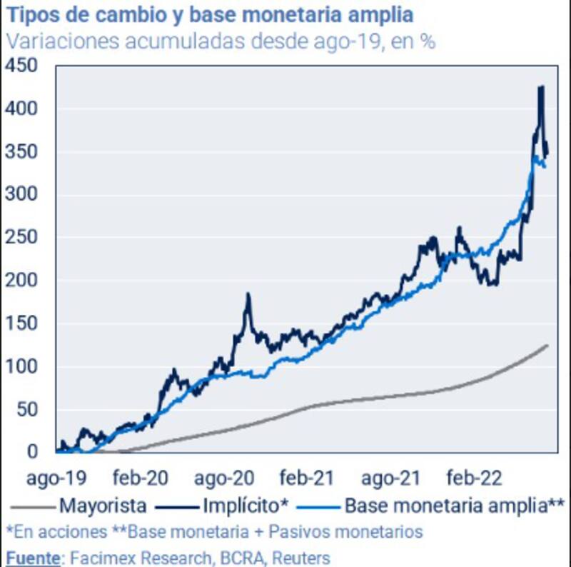 Concretamente, los analistas comparan la base monetaria amplia (es decir, la base monetaria y pasivos remunerados), versus el nivel actual del tipo de cambio y a partir de ello pueden inferir si es momento de comprar dólar o no.