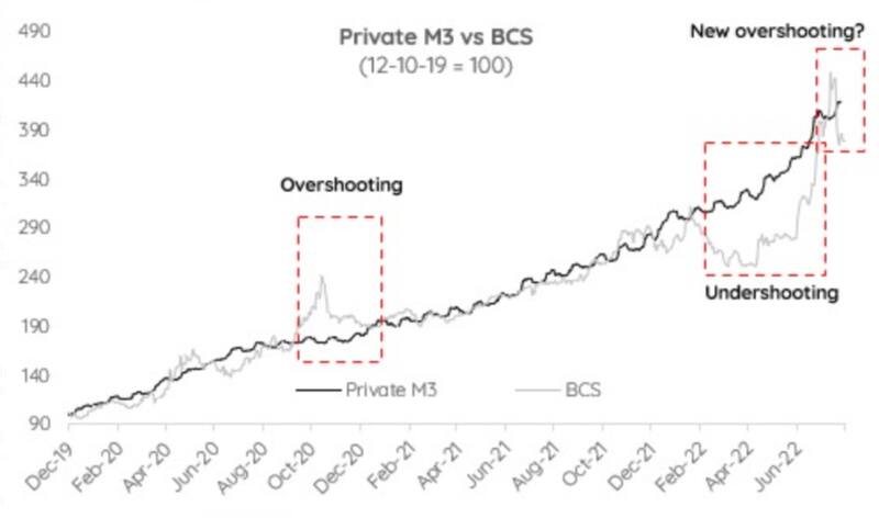 Emiliano Anselmi, head de team de macroeconomía de Portfolio Personal Inversiones, afirmó que si se observa la evolución del M3 Privado versus el contado con liquidación (CCL) desde que asumió Alberto Fernández, en las últimas semanas se pasó de una situación de "overshooting" a un "undershooting" (dólar más barato).