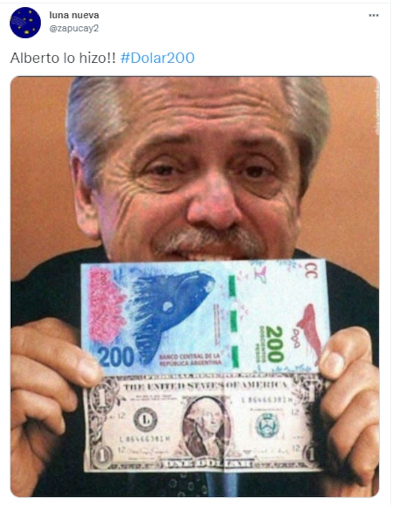 Twitter, la plataforma virtual por excelencia de inmediatez, posicionó al hashtag #Dolar200 entre las tres primeras tendencia del podio argentino, con meses y las frases más ingeniosas para graficar la suba del billete estadounidense.