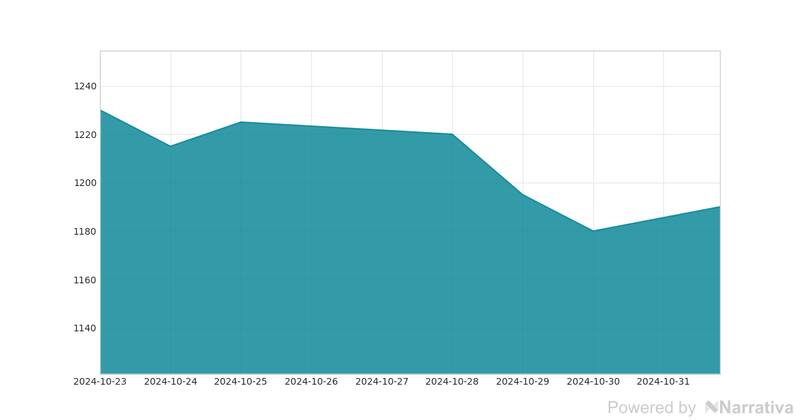 La cotización del dólar blue al cierre de los mercados este jueves, 31 de octubre de 2024 alcanzó los $ 1.190, cifra que señala una diferencia de -2,05% en comparación a la sesión de apertura.