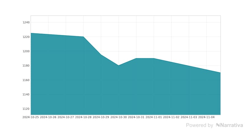 La cotización del dólar blue al cierre de los mercados este lunes, 4 de noviembre de 2024 alcanzó los $ 1.170, cifra que señala una diferencia de 0,85% en comparación a la sesión de apertura.