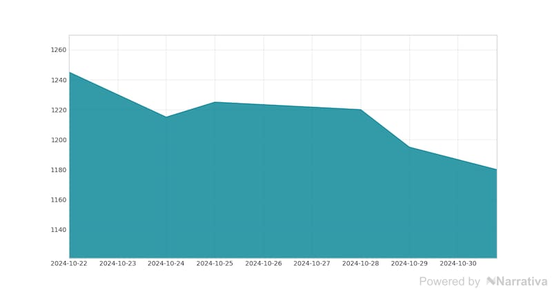 Al cierre de los mercados de este miércoles, 30 de octubre de 2024, la cotización del dólar blue a $ 1.180. Esta cifra demuestra una diferencia de -0,41% en relación a la sesión de apertura.