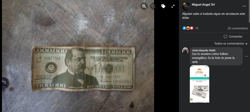 Referenciado como el dólar evangélico, se trata de un billete con la denominación de 1 millón.