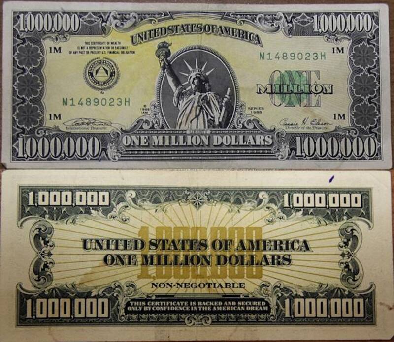"Hemos recibido muchas preguntas sobre si el Departamento del Tesoro alguna vez produjo un billete de un millón. Personas nos han enviado copias de esos billetes. Hemos hallado que son certificados de platino no negociables, conocidos como ‘emisión especial de un millón de dólares'. Estos billetes son una serie artística limitada y protegida con derechos de autor originalmente vendidos en un dólar por una firma canadiense como objetos coleccionables. No son billetes oficiales de Estados Unidos. Por ello no son redimibles por el Departamento del Tesoro", explica el Tesoro de los Estados Unidos en su sitio web.