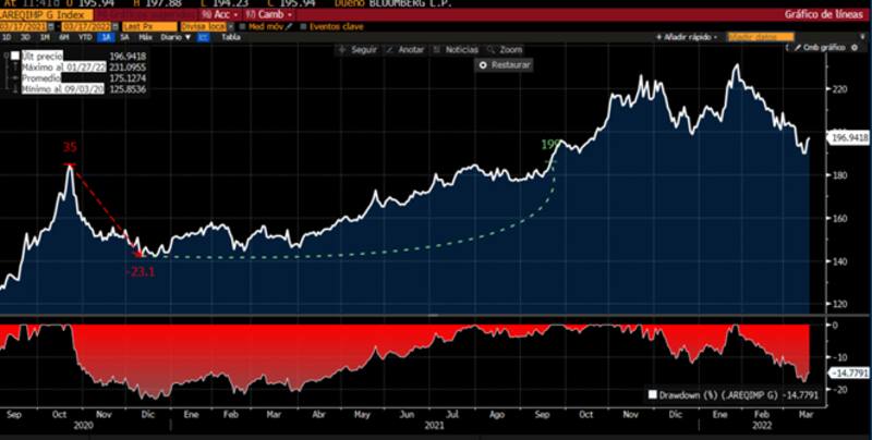 La última vez que el dólar cayó más de un 15%, el tipo de cambio tardó un año en regresar a los valores históricos previos. En octubre de 2020 el dólar CCL alcanzó un valor máximo de $184 y cayó luego a $ 143 en diciembre de 2020. Fue luego de que el Gobierno comenzara a intervenir en su precio mediante la compra-venta de bonos.