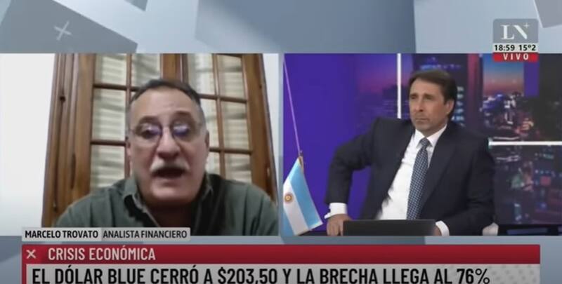 El analista financiero Marcelo Trovato indicó en diálogo con LN+ que su pronóstico de disparada récord del dólar, responde principalmente al retraso que muestra hoy la divisa estadounidense en relación a la inflación.