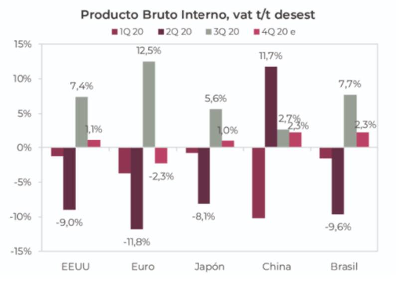 "Si bien a principios de noviembre del año pasado el mundo festejaba el éxito de las vacunas y la inminente vacunación, los contagios por Covid-19 continuaron, y tanto Europa como EE.UU. padecieron una segunda ola que obligó a nuevos confinamientos y restricciones. En estados Unidos, aunque siguió en alza, los datos de diciembre y enero en materia de empleo y ventas minoristas fueron decepcionantes. Son luces amarillas en un mundo que le cuesta dejar atrás la pandemia y en el que la recuperación económica no será ni tan rápida, ni tan lineal como se espera. El riesgo a una salida en forma de "W" sigue estando presente", advirtió Polo.