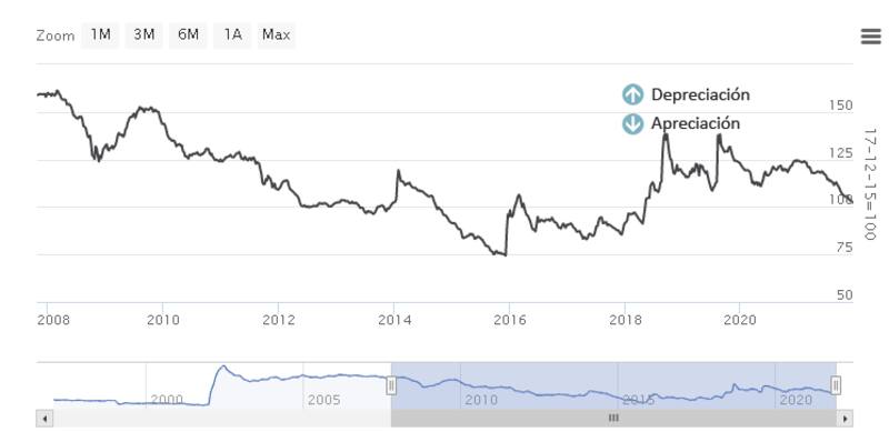 Para encontrar una apreciación real de dos dígitos hay que remontarse a 2011, año en que la el tipo de cambio real multilateral (TCRM) perdió una competitividad del 13 por ciento.
