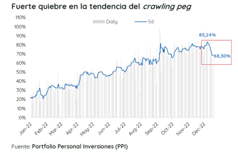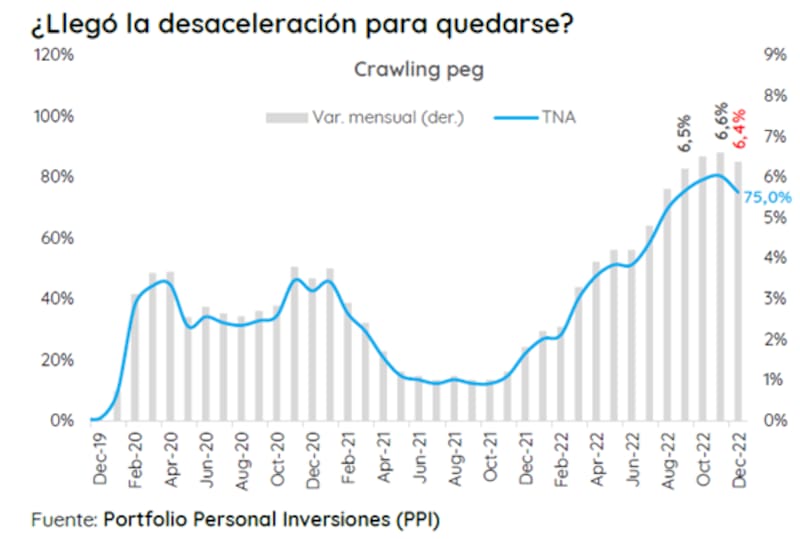 Con una visión similar, desde Portfolio Personal Inversiones (PPI) afirmaron que el crawling peg viene desacelerándose sensiblemente en las últimas seis ruedas.
