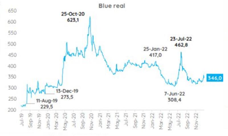 En cuanto a los objetivos, desde la mesa de trading del banco afirmaron que, si hoy fuesen las elecciones y hubiese una victoria del oficialismo con un sesgo más radicalizado, el dólar podría intentar superar los $ 460 que son similares a los niveles previos a la llegada de Sergio Massa a Economía, e incluso apuntando a niveles de $ 625 actuales, similares a los valores de octubre de 2020, previo al acuerdo con el FMI.