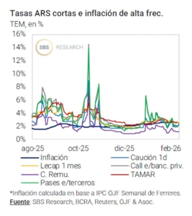 A su vez, las tasas en pesos caen a medida que la demanda de dinero también retrocede.