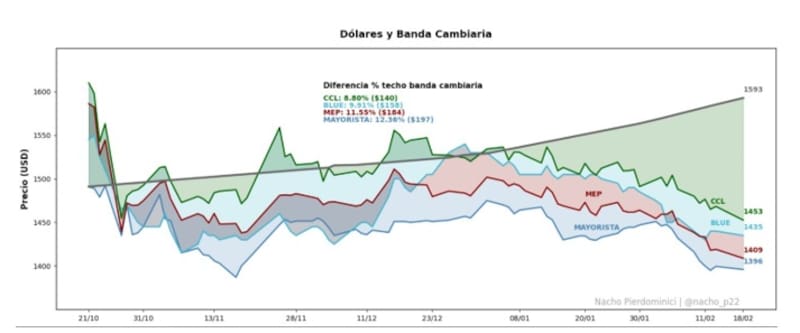 Dicho de otro modo, cuanto más cerca del techo e la banda, el carry toma más atractivo y cuanto más se aleja el dólar del techo, el carry se torna más riesgoso.
