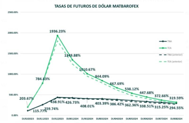 Medido en términos de tasa efectiva anual, la devaluación esperada para noviembre es de 784% (TEA), saltando al 1936% (TEA) en diciembre.