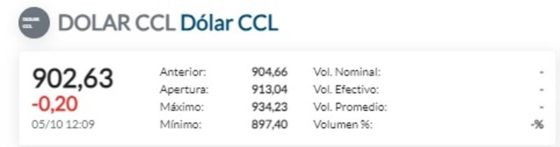 Ayer, el dólar contado con liquidación abrió al alza hasta a $934, avanzando 3%. Sin embargo, luego recortó posiciones hasta los $893.
