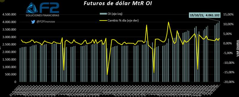 Los períodos electorales suelen llevar a los agentes a tomar posiciones de cobertura, algo que se está viendo, y con creces, en el mercado de dólar futuro del Rofex. Los contratos abiertos cerraron el viernes 15 de octubre en u$s 4061 millones, el valor más alto desde enero, si se excluyen algunos cierres de mes.