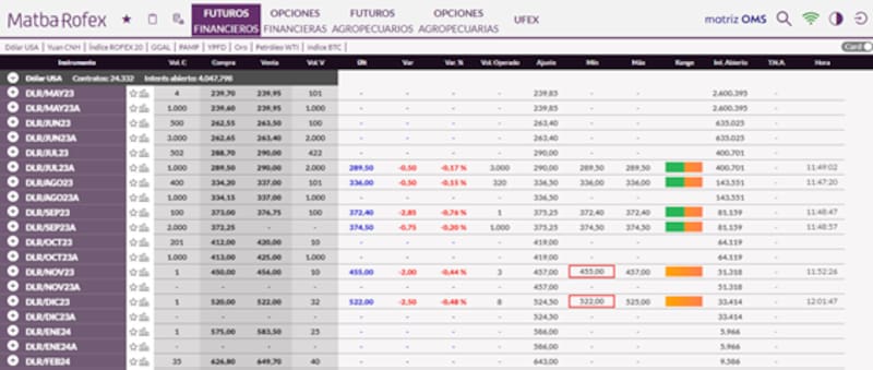 Los contratos de dólar futuro en Rofex ajustaron a la baja en los últimos días, aunque las mismas se ubican en niveles elevados.