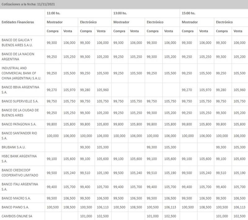 En tanto, cerró en $ 99,47 para la compra y en $ 105,79 para la venta en el promedio de las entidades financieras que releva el Banco Central (BCRA), mostrando otro leve avance en relación al cierre previo.