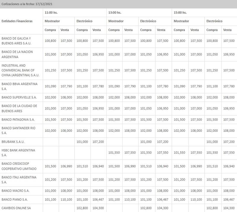 En tanto, cerró en $ 101,27 para la compra y en $ 107,57 para la venta en el promedio de las entidades financieras que releva el Banco Central (BCRA), mostrando otro leve avance en relación al cierre previo.