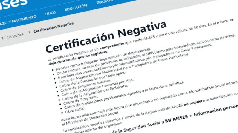 La Certificación Negativa de ANSeS es un trámite que no requiere autenticación ni sello y firma de un agente del organismo y es posible realizarlo de forma online: