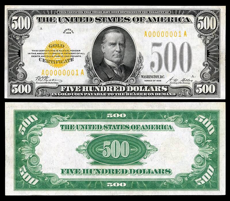 Si bien las denominaciones de dólares superiores a u$s 100 en la actualidad no están disponibles en el Departamento del Tesoro, el Sistema de la Reserva Federal junto con la Oficina de Grabado e Impresión, lanzaron el 14 de julio de 1969, billetes en denominaciones de 500, 1000, 5000 e incluso 10.000 dólares, que luego serían descontinuados inmediatamente debido a la falta de uso.