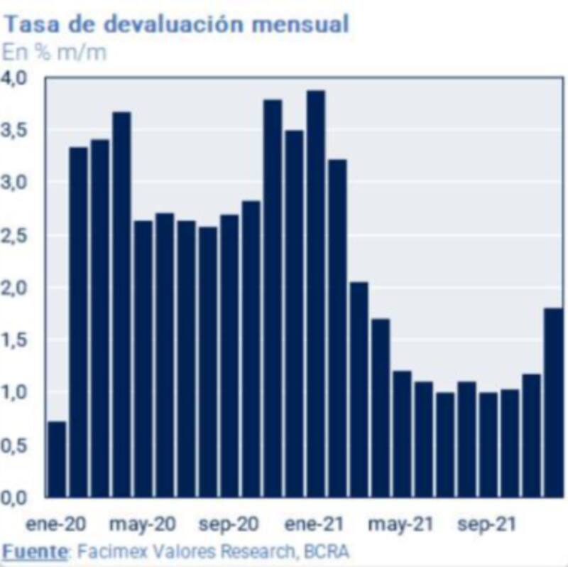 De hecho, la tasa de devaluación mensual actual es la más elevada desde el primer trimestre del año pasado y se ubica en niveles de 1,7% mensual.