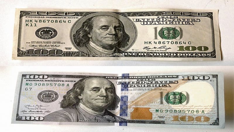 Los billetes de u$s 100 de cara chica se diferencia de los impresos entre 1929 y 1990 debido a queincluyen un hilo de seguridad incrustado en forma vertical a la izquierda del retrato de Franklin.