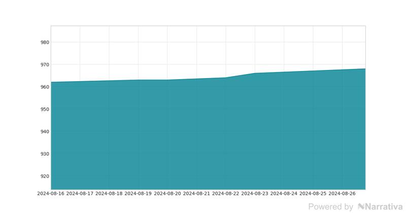 Al cierre de los mercados de este lunes, 26 de agosto de 2024, la cotización del dólar oficial a $ 968. Esta cifra demuestra una variabilidad de 0,05% en relación a la sesión de apertura.
