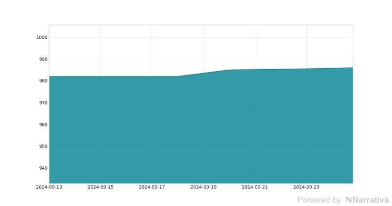 La cotización del dólar oficial al cierre de los mercados este martes, 24 de septiembre de 2024 alcanzó los $ 986, cifra que señala una diferencia de 0,15% en comparación a la sesión de apertura.