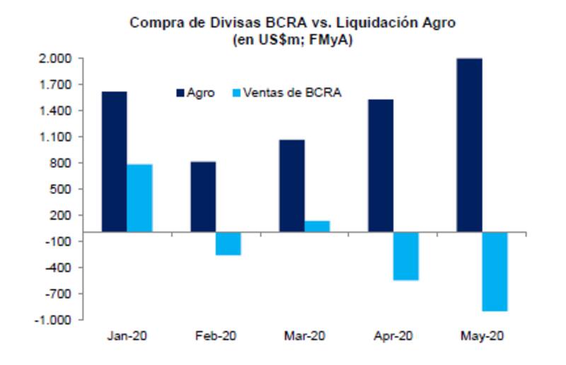 Desde que se implementó la cuarentena, el dólar paso de $ 80 a $ 120. Si bien estamos en plena temporada alta de liquidación del agro, el campo inyectó en mayo casi 20% menos que en mismo mes del año pasado, y el BCRA no logra acumular reservas, además de verse obligado a imponer nuevos y mayores controles cambiarios.