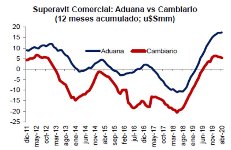 En abril se observó un superávit comercialde u$s 1400 millones, mientras que en el acumulado de últimos 12 meses alcanza los u$s 17.500 millones, siendo este el nivel más alto desde julio de 2009. Pese a ello, el BCRA solo acumuló u$s 200 millones.