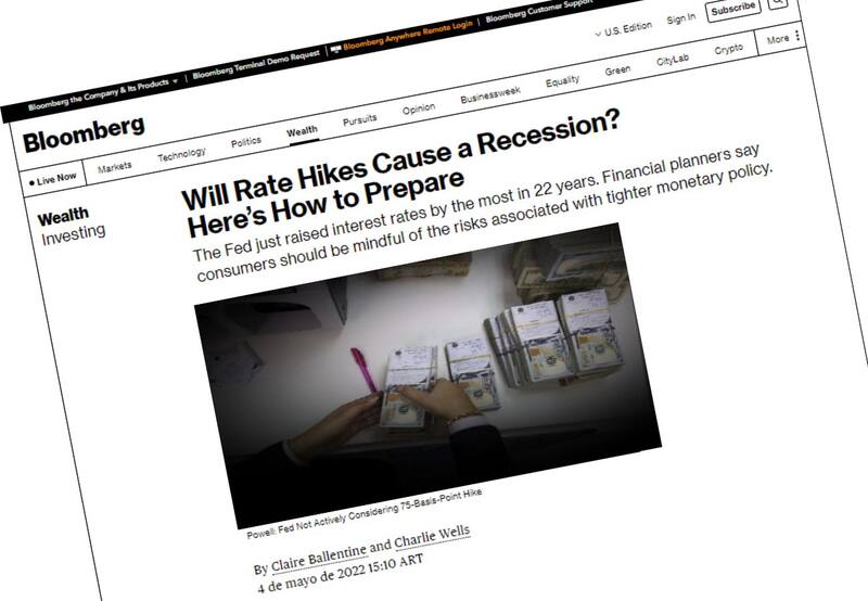 "La Reserva Federal de EE. UU. acaba de aumentar las tasas de interés al máximo en 22 años, lo que genera temores de que una recesión esté a la vuelta de la esquina", inicia el análisis de Claire Ballentine y Charlie Wells, titulado "Will Rate Hikes Cause a Recession? Here's How to Prepare".
