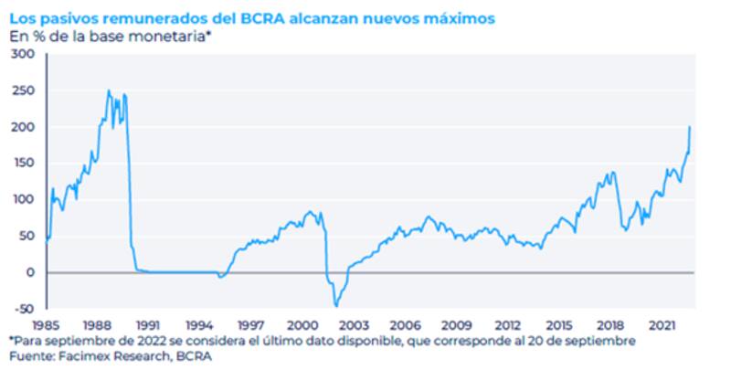 Hasta el 20 de septiembre pasado, los pasivos remunerados llegaron a $8.128 millones, alcanzando el 200% de la base monetaria.