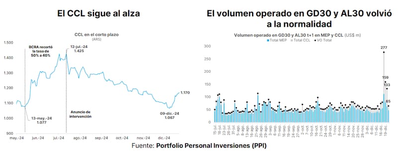 De todas formas, de acuerdo con la consultora, los volúmenes operados en los títulos utilizados para el MEP y CCL mostraron una moderación, lo que podría sugerir que se trata de compras residuales, ya que no está observando ventas importantes de otros instrumentos financieros.