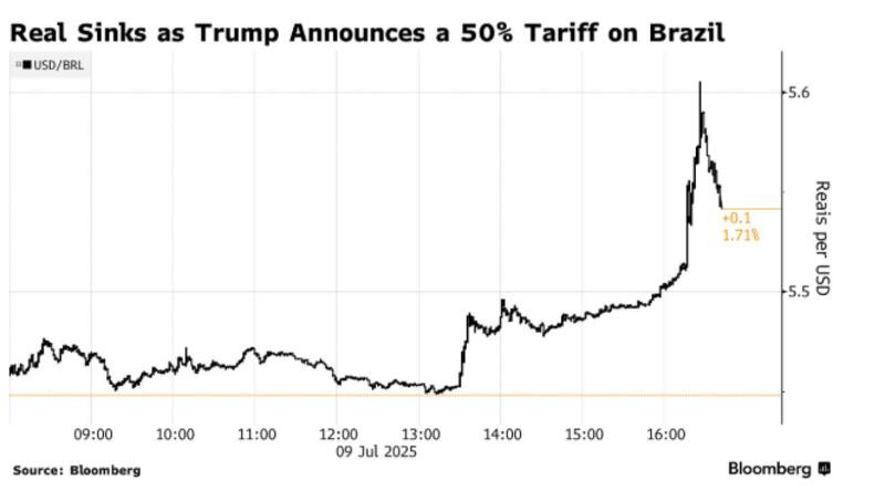 Donald Trump desató otra vez una tormenta en los mercados: su decisión de aplicar aranceles del 50% a las importaciones brasileñas sacudió al real, arrastró a la baja los activos de ese país y encendió las alarmas en la City local, donde ya se mide el posible efecto contagio sobre los mercados argentinos.