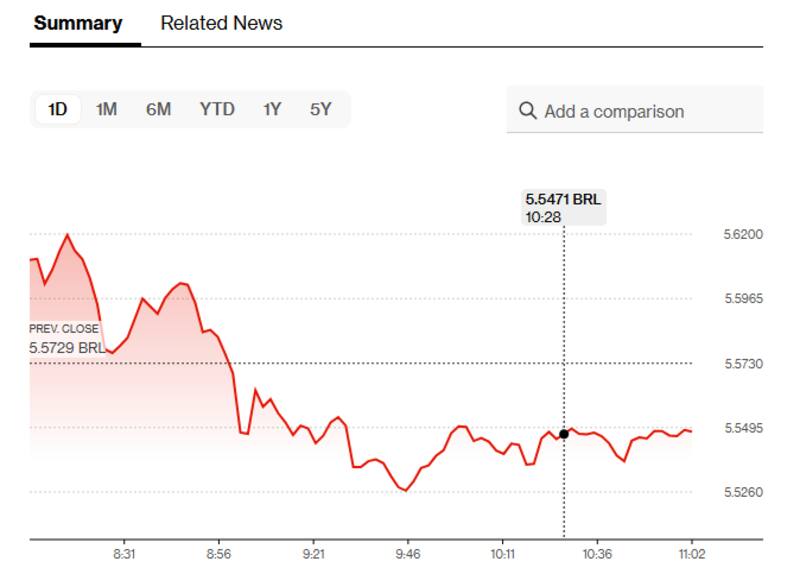 Diego Martínez Burzaco, country Manager de Inviu, comenta en declaraciones a El Cronista que, lo que más siente en este momento es una leve depreciación del real brasileño. "Este miércoles cayó un 2%, el jueves operó está relativamente estable, pero los activos brasileños continúan bajo presión, con una baja promedio superior al 2%", analiza Burzaco.