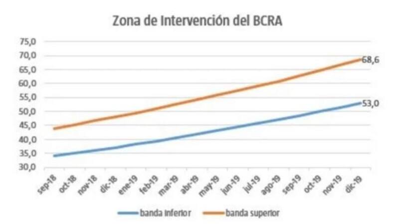 La zona de no intervención fue delimitada por el BCRA entre $ 35 y $ 45 por dólar. Ese intervalo se ajusta a una tasa de 3% mensual hasta fin de año y se recalibra al comienzo del año próximo.