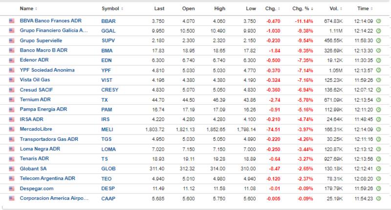 La deuda argentina se desploma más del 3% y acciones caen más de 10%.