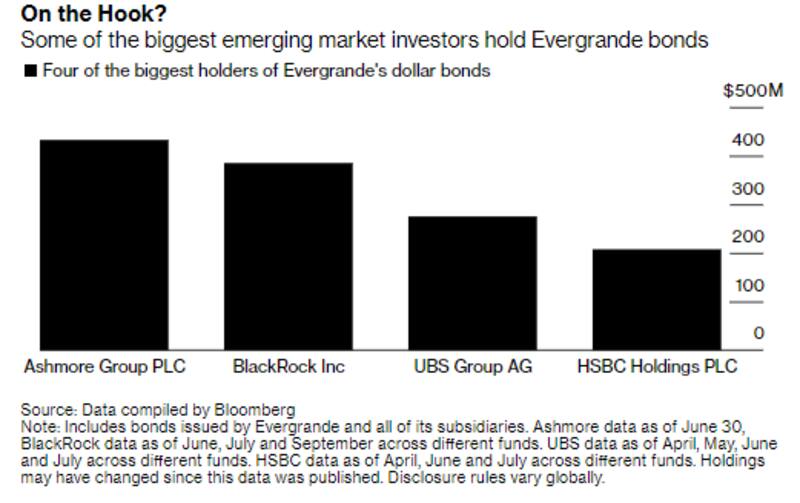 BlackRock Inc., UBS Group AG y HSBC Holdings Plc. también eran grandes propietarios, muchos de ellos en manos de vehículos que se centran en mercados emergentes de mayor riesgo o créditos asiáticos.