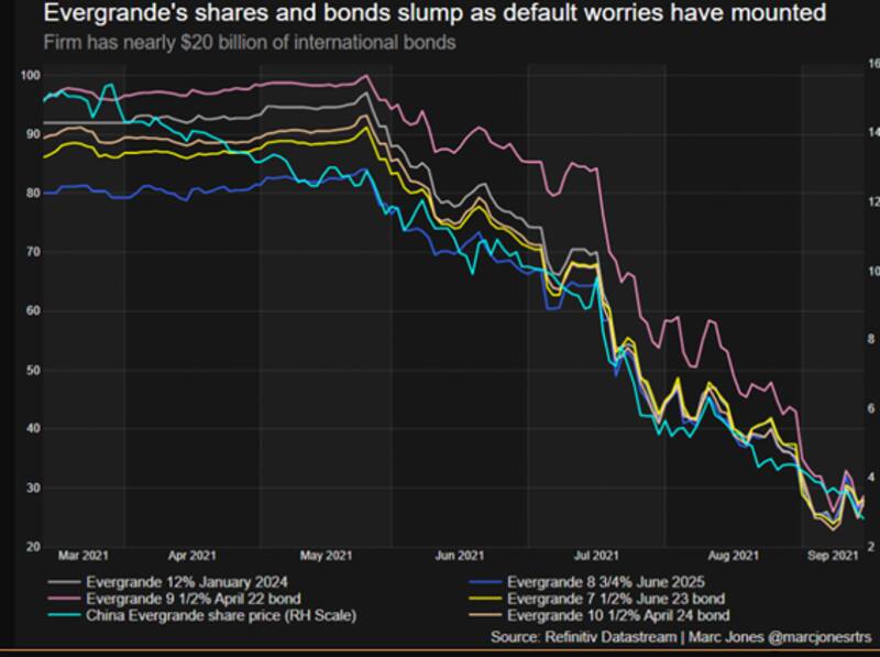 Los mercados globales se contagian de la volatilidad proveniente de China y en el que el gigante inmobiliario Evergrande declaró que se encuentra en un contexto de fuerte estrés financiero.