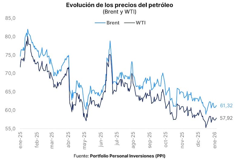 Ayer el barril estadounidense WTI operó en torno a los u$s 57-60, tras un 2025 que cerró con caída cercana al 20%. Por su parte, el inglés (Brent) rozó los u$s 60 y el punto de debate es si el mercado empieza a “pricear” una recomposición venezolana de producción hacia adelante, mayor disciplina saudí con impacto incierto y un panorama global de menor demanda.