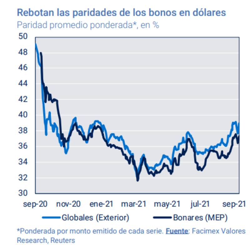 "El resultado de las PASO fue un gran impulso para el mercado, lo que llevará a un buen desempeño de todos los activos, en vistas de un posible cambio político en 2023. Creemos que la mejor alternativa dentro de la deuda argentina son los bonos globales 2030 y 2035, y bonares 2030. Hacia adelante, mantenemos nuestra postura que un acuerdo con el FMI es lo más probable hacia fines 2021, o el primer trimestre de 2022, aunque la probabilidad que sea un acuerdo que incluya un fuerte ajuste fiscal o normalización cambiaria es baja dada poca legitimidad del Gobierno", afirmó.